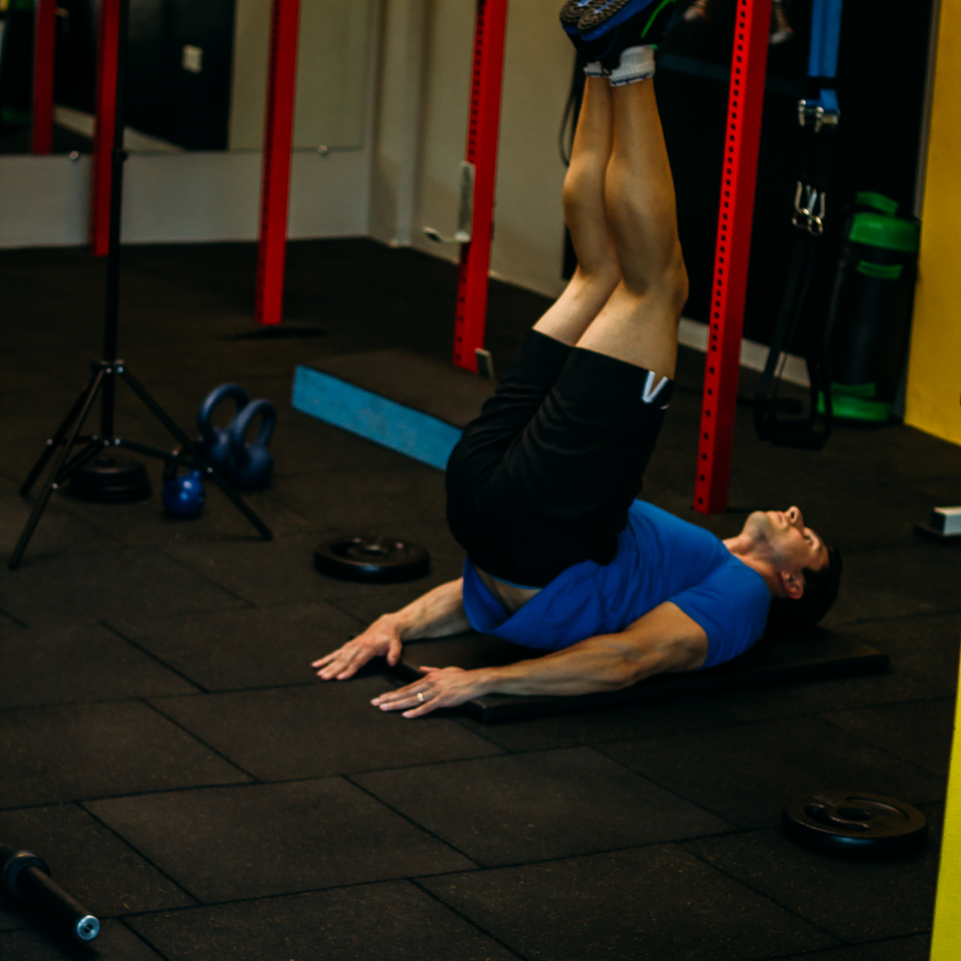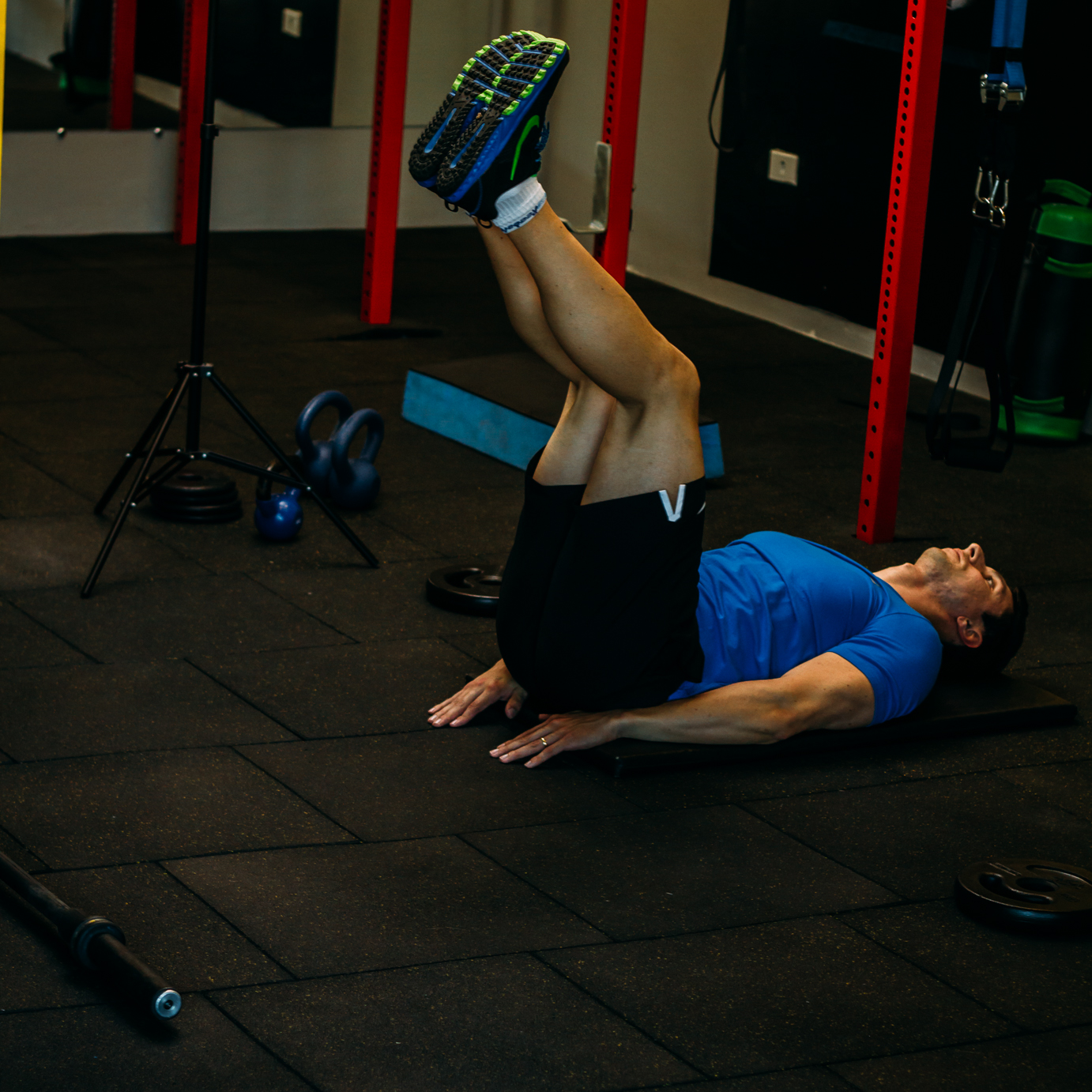 ao subir as pernas retire o quadril do chão, ativando com maior ênfase o abdômen